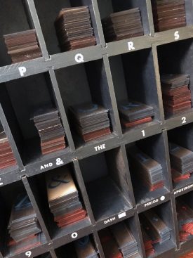 All in all, after my son and I spent a full evening cleaning and sorting the type, there were a few thousand letters and numbers and punctuation marks, but not a complete set of any of the LPC colors, ha. In any case, it gave me a good idea how the lettering was made, packaged, and distributed, and I did find at least ONE example of each character (as far as I can tell, numbers weren’t made) of the block red alphabet.